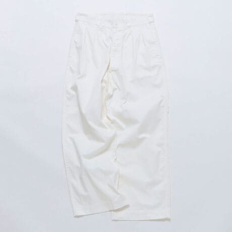 タックが入った太い腰回りから裾に向かって少しテーパードしたシルエットです。