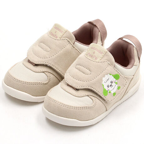 瞬足」と「いないいないばあっ!」のコラボモデルが登場!子供が自分で履きやすく、保護者の方々も履かせやすい「パカッと開くバンド」や、足指が適度に動かせる「つま先ゆったり」など工夫を随所に取り入れています。左右の外側にそれぞれ「ワンワン」と「ぽぅぽ」をあしらった、とてもかわいい1足です。