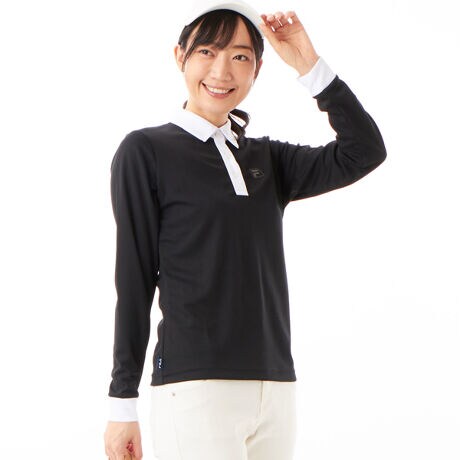 [型番:755501L]襟元の別色をデザインアクセントにした長袖シャツ。
