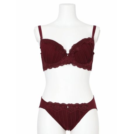 レースとプリーツを組み合わせて愛らしく仕上げたブラショーツセット。
