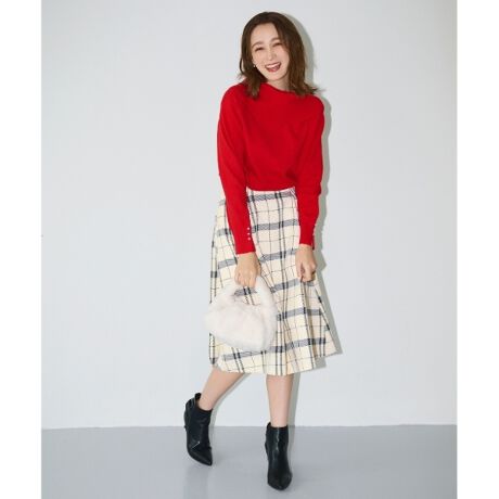 ・定番のチェック柄が旬の印象を与え、コーディネイトの幅を広げてくれるタックフレアスカート。