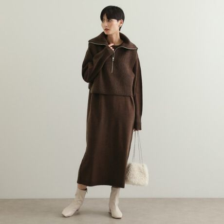・ハーフジップベストがセットになったロング丈ニットワンピースです。