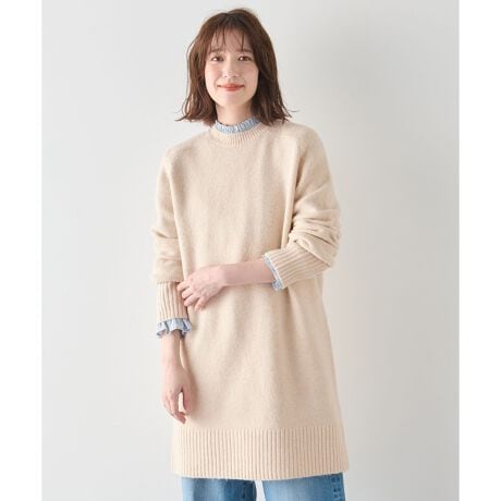 ・ラグランスリーブなのでストレスが無く着用しやすいデザイン・チュニック丈になっており、腰回りをさりげなくカバーしてくれる・柔らかな糸の印象を活かした淡いカラーの4色展開