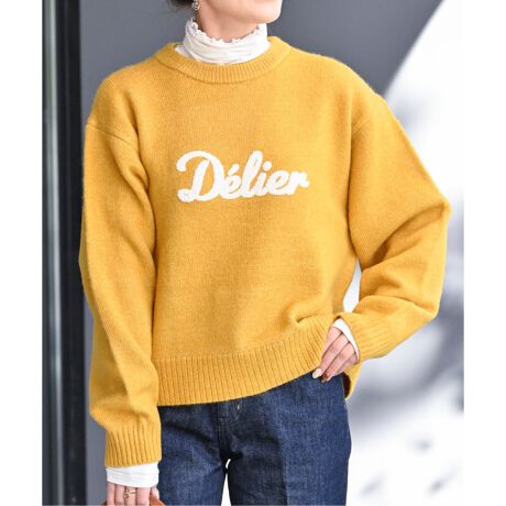 ベーシックなクルーネックニットにワンポイントとなるロゴのサガラ刺繍にて施しました。