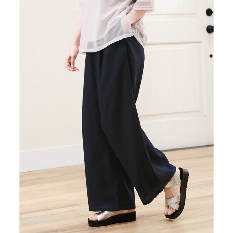 麻混素材を使用したイージーパンツ。
