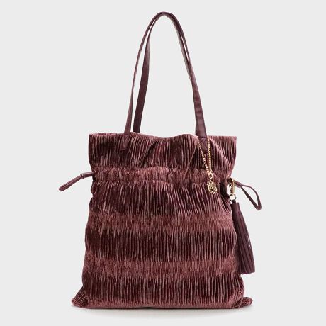 ベロアの生地感が季節感を高めてくれるプリーツトートバッグ。