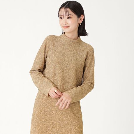 表にはポリエステルのラメ糸、裏には滑らかなナイロン糸を使用した伸縮性のある素材です。表は華やかさがあり、裏はなめらかな肌触りが特徴です。