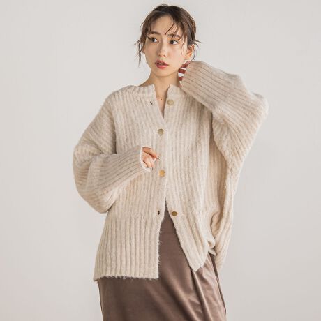 ふわふわのシャギーがシーズンムード高まるオーバーカーディガン。