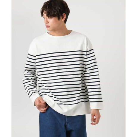 一枚でサマになるトレンドのパネルマリンボーダーカットソー。