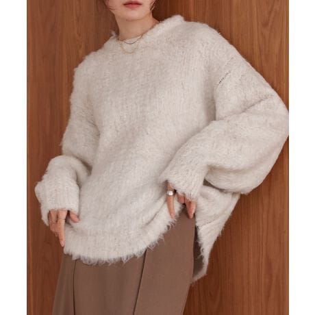 フワフワの起毛感がシーズンムードを高めるケガキニットです。軽量でノンストレスな着心地も魅力的です。