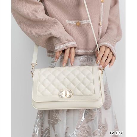 煌めくビジューとキルティングデザインが印象的なバッグ。