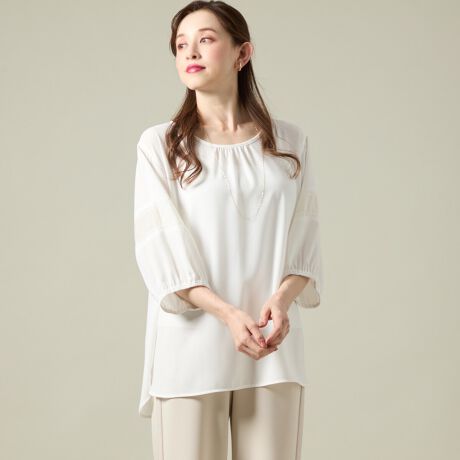 キレイめエレガントな印象を与えられる素材と丁寧に縫製されたブラウス。