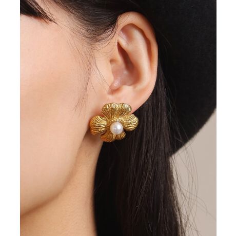 【“MELLOW”ボリュームフラワーパールピアス】