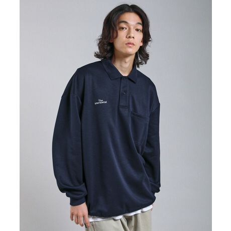 胸ロゴ刺繍裾ドローコード鹿の子ポンチハーフボタン長袖ポロシャツ