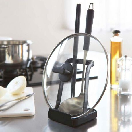 お玉以外の小物(菜箸・ターナー・ヘラ・トング・しゃもじなど)や鍋蓋・フライパンカバーなどを立てることができます。
