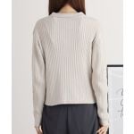伸縮性に富んだリブ編み素材が体のラインを美しく見せ、クラシカルなポロ衿が洗練された印象を与えます。