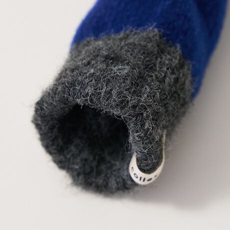 表はヘアリー、内側はモコモコし、配色も違うので、リバーシブルで違う雰囲気に。