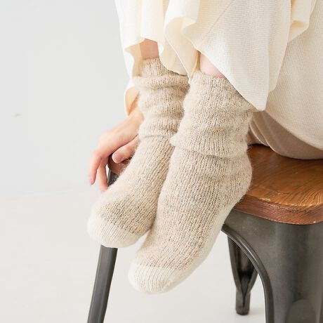 モコモコとふっくたやわらかく気持ち良いのが特徴でストレッチ性が高く、やさしく足を包み込みます。