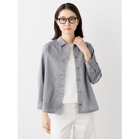シャンブレーフリルブラウス