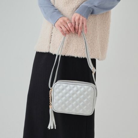 コロンとしたスクエア型に秋冬らしくキルティングを施したきれい目なショルダーバッグです。