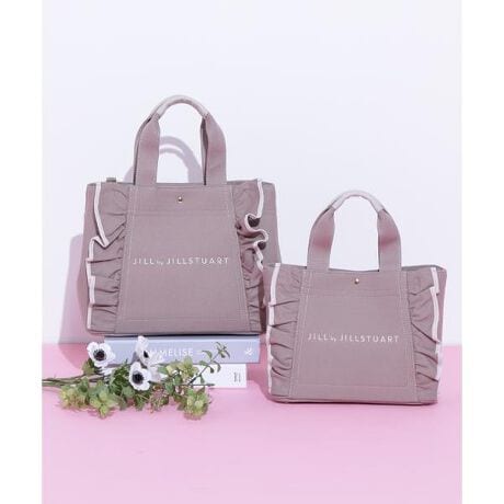 JILL by JILL STUARTで大人気のフリルトートバッグ。立体的なフリルディテールにパイピングをきかせたキュートなデザイン。スクエア型の小ぶりなシルエットながら、マチがしっかりあり普段使いにおススメ。ハンドル部分には合皮素材を合わせて、品の良さと実用性も兼ね備えました。※撮影時照明の関係により、色味が違って見える場合がございます。またパソコン・スマートフォンなどの環境により、若干製品と画像のカラーが異なる場合もございます。予めご了承ください。商品の色味は、商品単品画像をご参照下さい。※商品画像はサンプルのため、色味やサイズ等の仕様に変更がある場合がございますので、予めご了承ください。