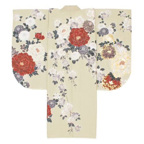 牡丹や桜、藤や松竹梅などの花々に雪輪や雲取りが散りばめられたモダンなデザインです。