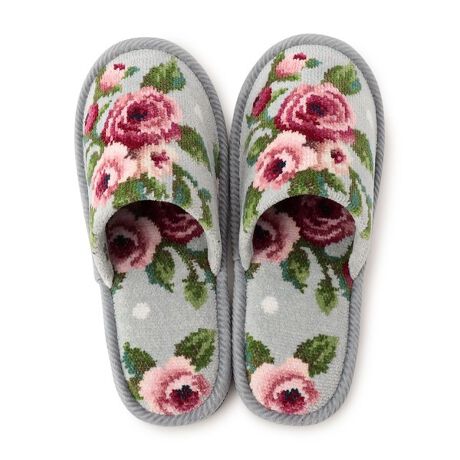 優美なバラの花が足元を飾る「マイジュリエット」のスリッパです。ソールには厚みを持たせてクッション性にこだわり、快適な履き心地を実現。底面はフェルト生地で足音が気になりにくいです。同柄のマット類とのトータルコーディネートにおすすめです。