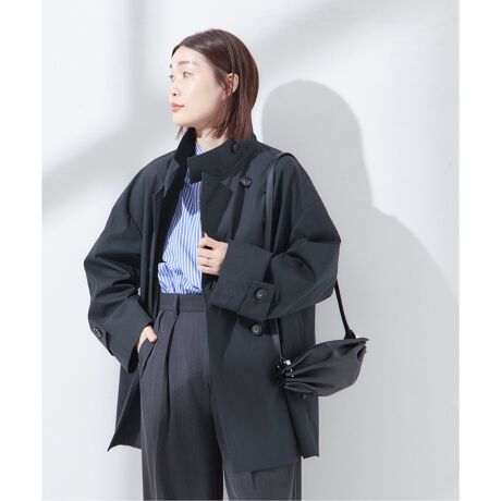 ゆったりしたサイズ感に、程よいハリ感のある素材で、どことなくメンズライクな雰囲気がありつつも控えめなスタンドの高さで、取り入れやすいスタンドコートです。