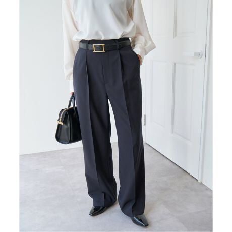 ウエストに施されたタックが上品な雰囲気を演出するストレートパンツ。