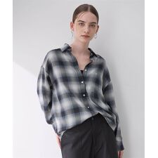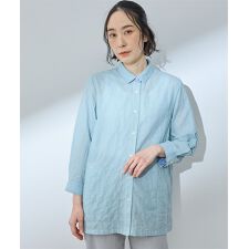 鉄線プリントが施されたアシンメトリーな配色シャツ。