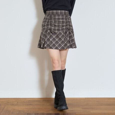 トレンドのリボンギャザーが韓国っぽくポイントのスカートです! マルチと黒には、今季トレンドのチェック柄を採用。<br>インナーパンツつきなのもうれしいポイントです。<br>ウエストはアジャスターゴムで調節が可能。<br>右側にポケットがついています。<br>トップスを問わず着用できる万能アイテムですが、ニット合わせのオトナ見えコーデが特におすすめです。<br>【おすすめの着用時期は秋冬シーズン】