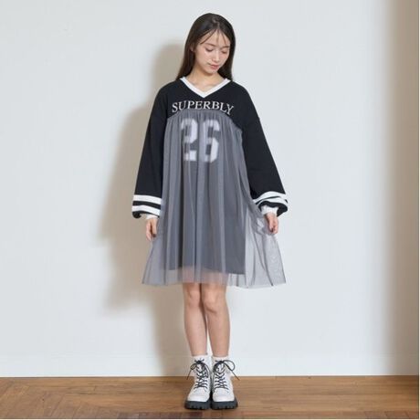 チュールでリメイク風にアレンジした個性的なスウェットワンピースです。