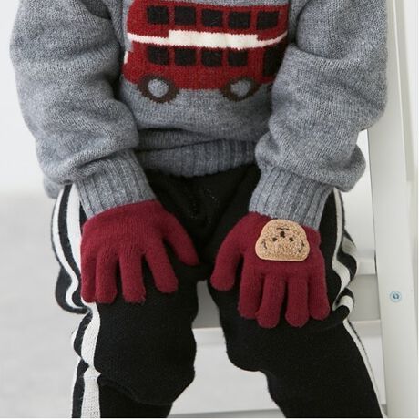 手の甲の立体的なアップリケがユニークな手袋です。