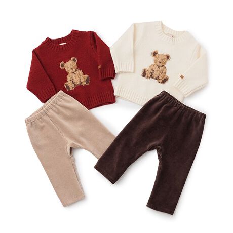 くまモチーフが可愛らしいニットとパンツのセットです。<br><br>ご家庭の洗濯機で洗える手軽さがうれしいポイント。<br>フワもちっとしたあたたかみのある生地で、肌寒い季節に重宝します。<br>セットでの着用はもちろん、上下の組み合わせを変えるのもおすすめです。<br><br>【おすすめの着用時期は秋冬シーズン】<br><br>【透け感】透けない<br>【生地の厚さ】厚い<br>【伸縮性】あり<br>【裏地】なし<br>【ポケット】なし<br>【アジャスター】なし<br><br>キッズ・ジュニアサイズとリンクコーデが叶います<br>品番:9644223<br>商品名:【リンク/フワもちっと】アニマルニット<br>サイズ:S・M・L<br><br>品番:8444223<br>商品名:【リンク/フワもちっと】アニマルニット<br>サイズ:F