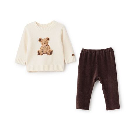 くまモチーフが可愛らしいニットとパンツのセットです。<br><br>ご家庭の洗濯機で洗える手軽さがうれしいポイント。<br>フワもちっとしたあたたかみのある生地で、肌寒い季節に重宝します。<br>セットでの着用はもちろん、上下の組み合わせを変えるのもおすすめです。<br><br>【おすすめの着用時期は秋冬シーズン】<br><br>【透け感】透けない<br>【生地の厚さ】厚い<br>【伸縮性】あり<br>【裏地】なし<br>【ポケット】なし<br>【アジャスター】なし<br><br>キッズ・ジュニアサイズとリンクコーデが叶います<br>品番:9644223<br>商品名:【リンク/フワもちっと】アニマルニット<br>サイズ:S・M・L<br><br>品番:8444223<br>商品名:【リンク/フワもちっと】アニマルニット<br>サイズ:F