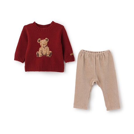 くまモチーフが可愛らしいニットとパンツのセットです。<br><br>ご家庭の洗濯機で洗える手軽さがうれしいポイント。<br>フワもちっとしたあたたかみのある生地で、肌寒い季節に重宝します。<br>セットでの着用はもちろん、上下の組み合わせを変えるのもおすすめです。<br><br>【おすすめの着用時期は秋冬シーズン】<br><br>【透け感】透けない<br>【生地の厚さ】厚い<br>【伸縮性】あり<br>【裏地】なし<br>【ポケット】なし<br>【アジャスター】なし<br><br>キッズ・ジュニアサイズとリンクコーデが叶います<br>品番:9644223<br>商品名:【リンク/フワもちっと】アニマルニット<br>サイズ:S・M・L<br><br>品番:8444223<br>商品名:【リンク/フワもちっと】アニマルニット<br>サイズ:F