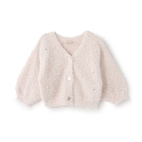 パールを添えて上品な雰囲気に仕上げたニットカーディガンです。