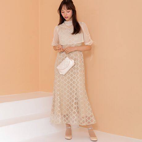 デザイン性の高いシャーリングデザインのボレロを合わせて可愛いを詰め込んだ1着。