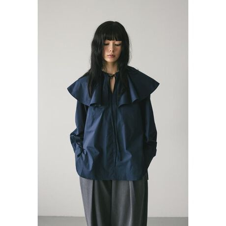 モデル身長163cm(FREEサイズ着用)ラッフルカラーが華やかなブラウス。華やかながらラッフルの分量を調整した大人モードな一枚。前立て部分はボタンが隠れる仕様で上品な印象に導きます。ストレッチなし、透け感なし。【お手入れ方法】マシンウォッシュ可