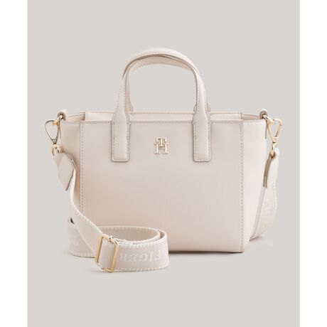 ソフトな手触りのフェイクレザーを使用したミニトートバッグ。表面にシボ加工が施されており、リアルレザーを思わせる仕上がりです。傷がついても目立ちにくい特徴があり、デイリー使いに最適。キラリと輝くメタルのモノグラムがアクセント。ロゴジャカードテープのショルダーストラップは着脱可能です。