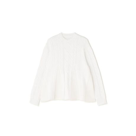 数種類の柄編みが入ったデザインです。シルエットは、フレアシルエットで、パンツやタイトスカートのコーディネイトがおすすめです。