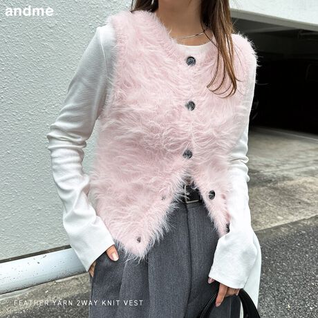 フェザーヤーン 2way ニット ベスト トップス