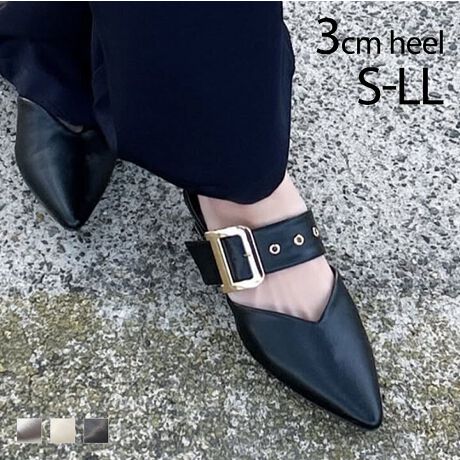 【26春夏新作カラー追加】ポインテッドトゥVカットバックルベルトミュールパンプス