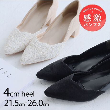 履きごこちやみつき!ポインテッドトゥ異素材フラワーカット4cmヒール感激パンプス