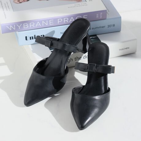 【26春夏新作カラー追加】ポインテッドトゥリボンストラップミュールパンプス