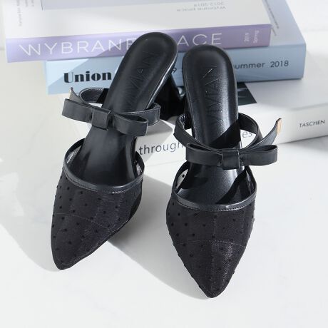 ・リボンで足元に華やかさをプラスするミュールパンプス!