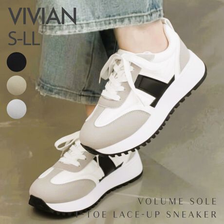 ・異素材コンビカラーのTトゥデザインレースアップスニーカー!