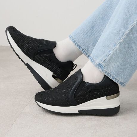 後ろ姿が映えるビジュー付きスリッポンウェッジスニーカー