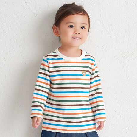 ミキハウス ホットビスケッツのボーダー柄Tシャツ。