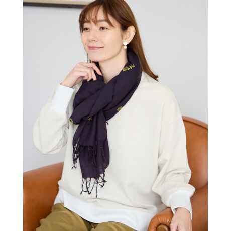 [型番:467R1001]配色のジャカード柄がポイントのウール100%のストールです。巻いたり肩にかけたりと季節の変わり目の温度調節にピッタリです。